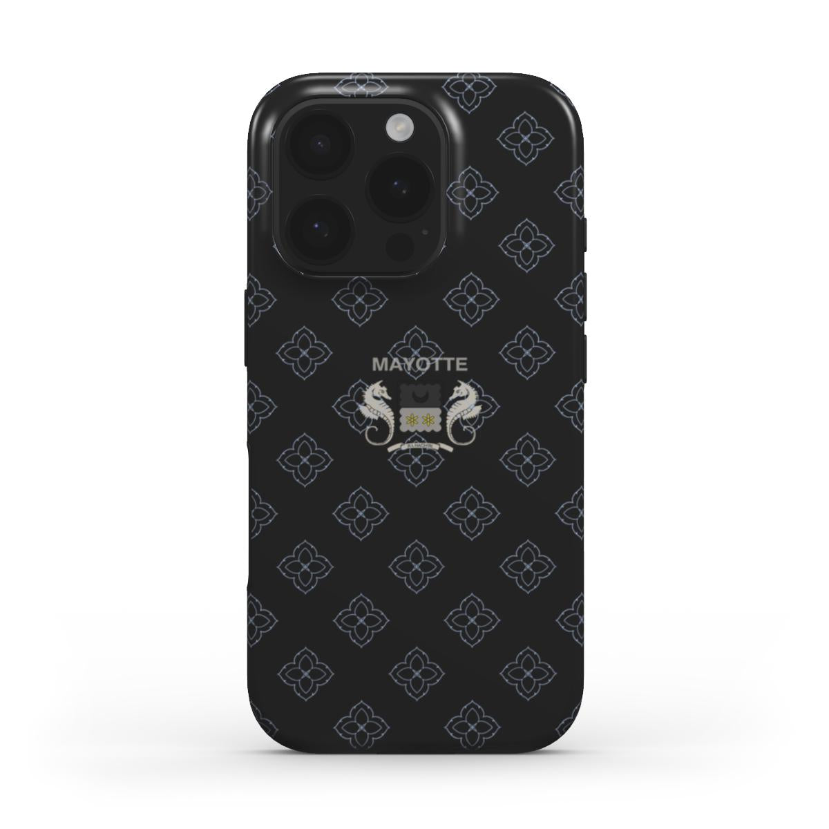Cette coque allie sobriété et identité grâce avec ses motifs géométriques et son blason de Mayotte finement intégré. Un design noir raffiné, discret et profondément symbolique, idéal pour représenter Mayotte avec classe au quotidien.